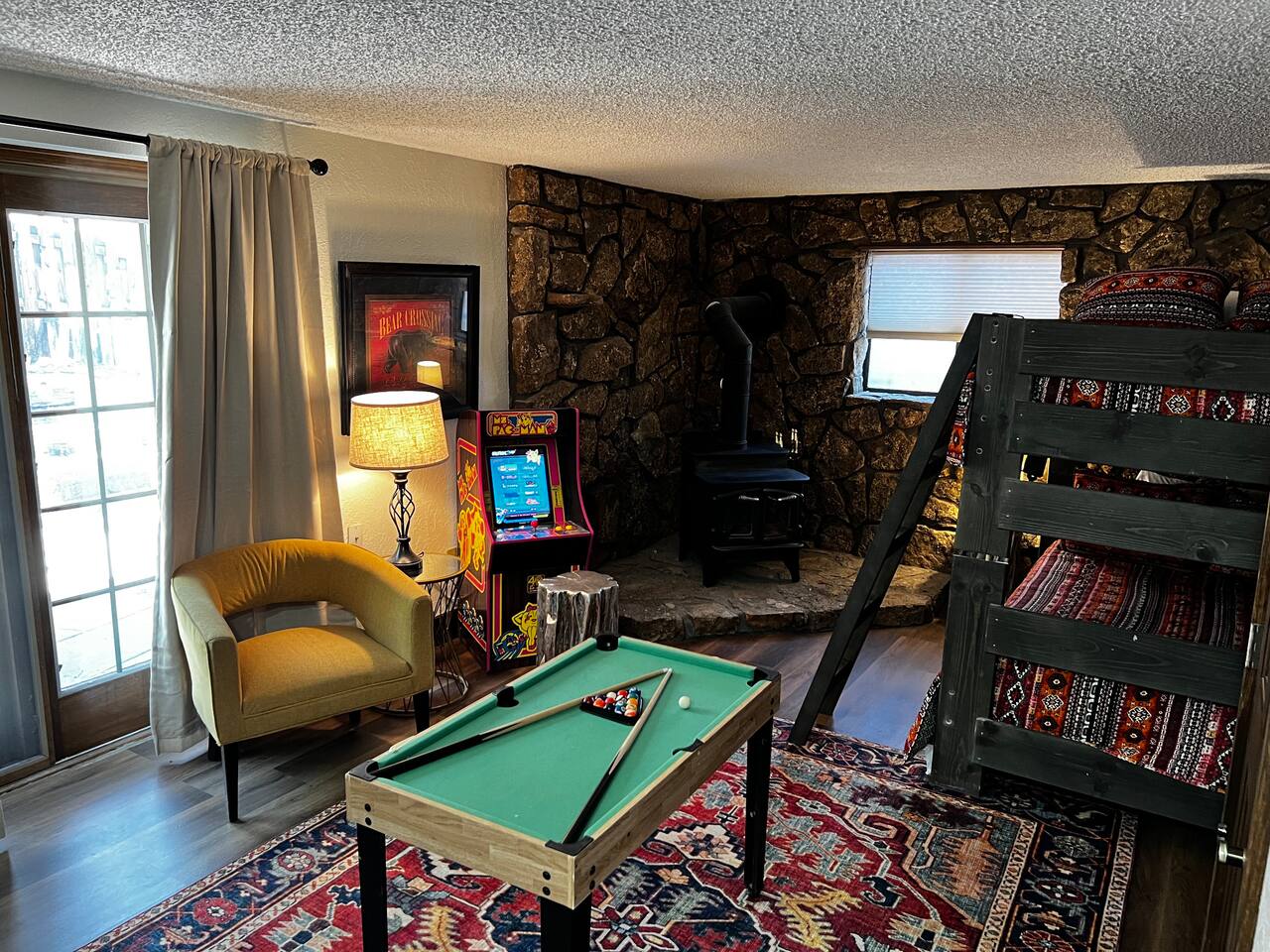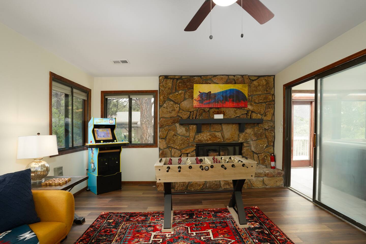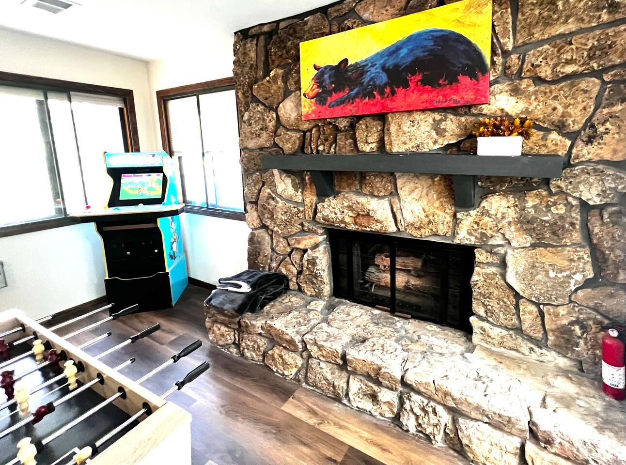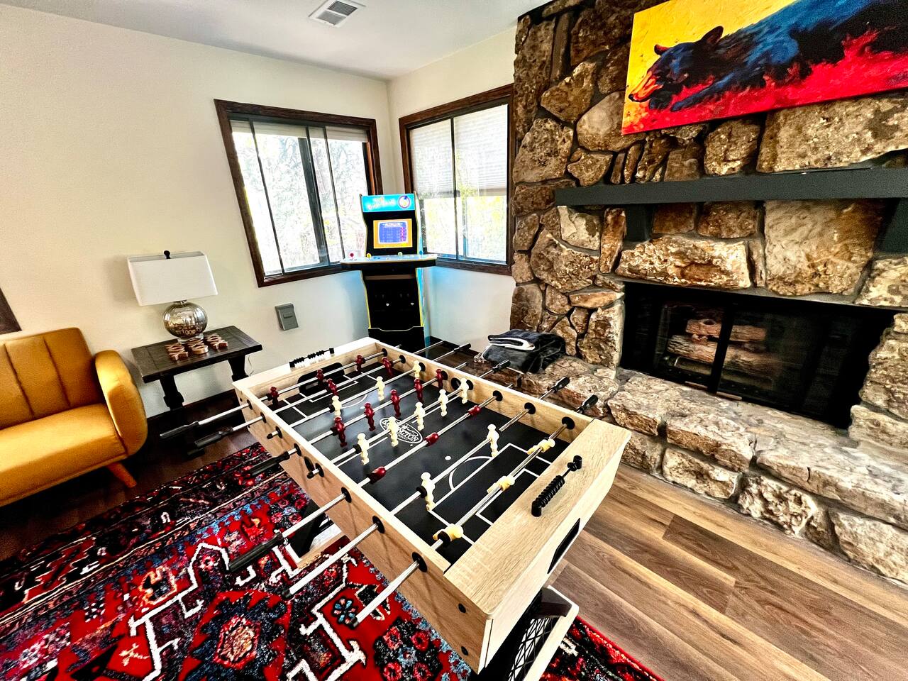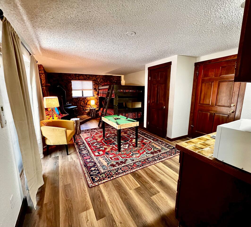 Welcome to our Mountain Views ☆ retreat, Colorado Springs' most iconic family home. Here are some highlights: ▶︎ Private arcade & game room ▶︎ Hot tub ▶︎ Firepit This home is a newly furnished. Gorgeous home with indoor hot tub, wooded floors, game Luxurious bedding! Board games, axe throwing yard game , putt putt golf, mini arcade and Foolsball table. Lots Of space for all size friend groups or families. minutes from the Air Force Academy, Garden of the Gods. Easy access to I-25 STR149